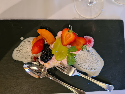 Read moreDer Weg zum Restaurant war beeindruckend mit rotem Teppich und historischem Gemäuer bis hin zur alten Turmuhr. Unser Tisch lag zentral und der erste Eindruck war positiv. Als Vorspeise wählten wir eine Cremesuppe von der Erbse mit Frühlingskräutern, Garnele und Minze. Die Aromen waren fein abgestimmt, allerdings war die Garnele zu durchgebraten und dadurch trocken.