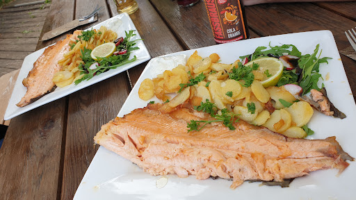Read moreSchönes Ambiente, die Karte hat mir sehr gut gefallen da es nicht zu viel Auswahl gab sondern (bis auf ein paar Ausnahmen) das was auch wirklich dort im Teich (oder in der Nähe) schwimmt. Da wir selbst Nordhessen sind kennen wir die Art recht kurz angebunden zu sein. Aber ich fand jetzt weder den Herrn hinterm Grill noch die Dame bei der ich im Haus bestellt habe unfreundlich. Wir hatten den Saibling mit Bratkartoffeln, Garnelen und Reibekuchen mit Apfelmus. Der Saibling war ein Gedicht genau auf den Punkt gegrillt, die Bratkartoffeln waren wundervoll. Ich glaube die besten Bratkartoffeln die ich außerhalb gegessen habe. Kross und doch weich in der Mitte, einfach Klasse. Verständlich ist das sie die Öffnungszeiten auf die Sommerrodelbahn angepasst haben, da diese auch um 18 Uhr schließt, ich könnte mir aber vorstellen wenn sie das Geschäft bis 20 Uhr oder sogar 21 Uhr öffnen und eine bessere Beschilderung unten an der Abbiegung und am Edersee machen wäre der Laden immer voll. Denn wo bekommt man so leckeren, frischen Fisch.
