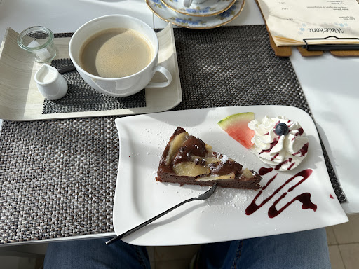 Ein sonnenreicher Sonntagnachmittag... Viele Ausflügler und Spaziergänger sind ins Cafe geströmt. Teilweise waren Plätze reserviert. Vorab: Kuchen und Torten waren lecker - das ist auf alle Fälle für einen weiteren Besuch vorgemerkt. Aber!: Da im Cafe kein Platz mehr war nahmen wir draußen Platz (nachdem wir etwas warten mussten). Die Bemerkung über die lange Wartezeit auf deren Bestellung hätte uns warnen müssen. Die Bestellung wurde zwar zügig aufgenommen, doch dann reihten wir uns in die ungeduldig Wartenden ein... Teilweise fiel an Nachbartischen die Bemerkung des Personals, daß es leider etwas länger dauern wird, bis die Bestellung an den Tisch gebracht wird, da das Cafe komplett voll ist. Diese Information sollte aber eigentlich gleich bei Aufnahme der Bestellung an den Gast erfolgen, da bei ca 10 Grad Aussentemperatur nicht jeder eine halbe Stunde auf den wärmenden Kaffee warten möchte. Und selbst der Kaffee hatte sich wohl den Temperaturen angepasst. Kaffee und auch heißer Aperol waren beim Servieren eher lauwarm... Nun waren zwar die Getränke am Tisch - leider fehlte der bestellte Kuchen / Torte. Dies kam erst ca. 10 Minuten später. Da war der Kaffee nun schon kalt bzw. ausgetrunken. Fazit: Lecker Torte / Personal zwar meist freundlich doch sollte der Gast über Wartezeiten sofort informiert werden / Das Servieren von Torte und Co sollte gleichzeitig mit den Getränken geschehen (mindestens aber sofort...