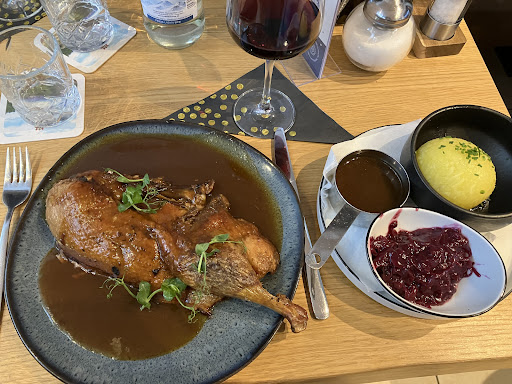 Das Angebot an Speisen in der Karte ist überschaubar. Das Essen ist lecker und sehr ansprechend angerichtet. Das Auge isst mit. Die Portionen sind ausreichend, wobei sehr gute Esser sich eventuell eine Vorspeise bestellen sollten. Oder ihr habt Kinder dabei. Da bleibt garantiert Einiges übrig. Es gibt nämlich keine Kinderkarte bzw. -portionen. Darauf wird hier nicht eingegangen. Nicht mal auf Nachfrage. Vielleicht kommt es ja noch.