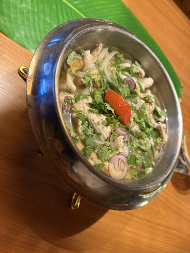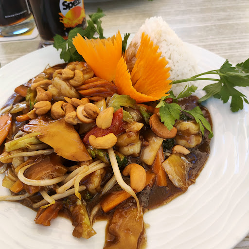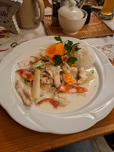 Geschmacklich war mein/unser Essen leider eine 3 von 10 Vorspeise Tom-Kha-Guei Suppe und Hauptgang Thai Curry. Die Suppe war ungenießbar und niemand wollte diese nach dem ersten Löffel weiter essen. Das Thai Curry bestand aus einem Hauch von Reis mit 6 Garnelen, kaum Gemüse also wirklich kaum Gemüse und einem See an Soße um dem ganzen etwas fülle verpassen zu wollen.