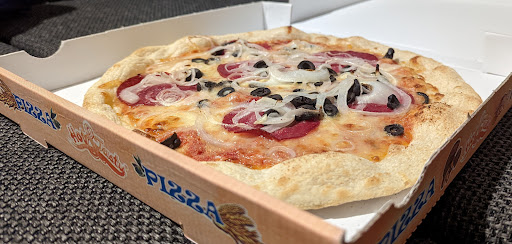 Read moreDie Pizza hatte einen dünnen, knusprigen Steinofenpizzaboden. Der Rand war sehr kross und knusprig, aber etwas zäh. Der Belag war mengenmäßig sehr gut und wirkte von guter Qualität. Gewürzt wurde wirklich lecker, leicht tomatig. Käsemenge war gut.