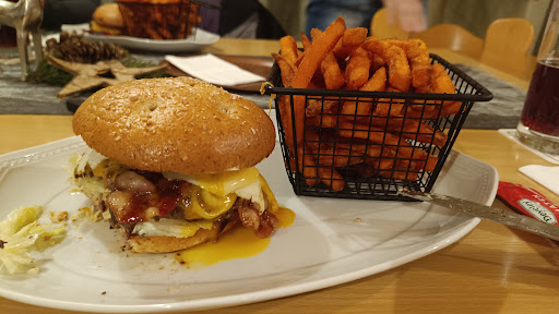 Das Essen war solide. Burger und Pommes echt gut, Braten und (ein!) Knödel den Preis von 17€ jedoch nicht mal ansatzweise wert. Wir kommen nicht mehr, sollte klar sein dass der Andrang am Feiertag mit gutem Wetter größer ist. Unterm Strich geht das...