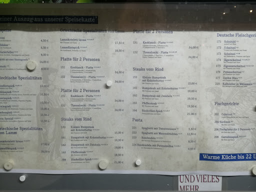 Das Restaurant hat ein nettes Ambiente. Man kann drinnen und draußen sitzen. Das Personal ist nett und aufmerksam. Die Karte hat einen guten Umfang an deutschen und griechischen Speisen. Die Preise sind günstig. Es gibt Kinder und Senioren Teller. Die Portionen waren schnell da, sehr groß und haben unserer großen Gruppe alle sehr lecker geschmeckt. Ich hatte einen Seniorenteller und war danach gut satt. Auch weit nach 22:00 Uhr haben wir hier mit unserer großen Gruppe sämtliche bestellten Speisen bekommen können, das ist auch nicht selbstverständlich. Vor dem Lokal sind viele kostenfreie Parkplätze vorhanden. Mir hat es hier sehr gut gefallen. Die teilweise sehr schlechten Bewertungen für dieses Lokal kann ich auf Grund dieser guten Erfahrung nicht...