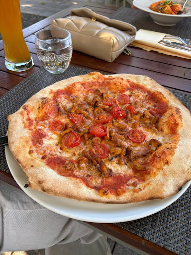 Die Pizzen waren wirklich lecker! Das Risotto Walldorf konnte da leider nicht mithalten: geschmacklich eher flach, etwas wĂ€ssrig und nicht schön cremig, wie man es sich wĂŒnschen wĂŒrde. EnttĂ€uschend war auch der Beilagensalat. FĂŒr 7âŻâŹ gabâs eine Portion Eisbergsalat mit zwei TomatenhĂ€lften, ein paar roten Zwiebeln und Olivenöl â das fanden wir schon sehr knapp.