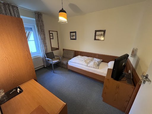 Mein 2-maliger Besuch, jeweils für eine Nacht, hatte geschäftlichen Hintergrund. Ausgewählt auf Grund kalter Zahlen (Preis-Leistung) stellte sich nach Ankunft und einchecken schnell heraus, dass viel mehr in diesem Hotelchen mit Restaurant steckt, als allgemein angenommen. Der Eigentümer ist ein passionierter Jäger, Koch und warmherziger Mensch - soviel kann ich in dieser Kurzen Zeit des Kennenlernens schon mal sagen. Auch wenn er derzeit der Wildschweinplage nicht Herr wird, so führt er die Hotellerie mit entschlossener und äußerst netter Begleitung sehr erfolgreich. Nicht nur die ambitionierten Wildgerichte, die auf der Karte stehen, sondern auch das kleine "Schwätzchen" nebenbei haben mich von seinen Künsten überzeugt. Aus einer kleinen Theke kann mann die verschiedensten Wildprodukte erwerben. Mit dem netten, bescheidenen und aufgeschlossenen Auftreten fühlt sich jeder Gast sofort wohl. Das Restaurant ist eine Klasse für sich und wer sich technische für eine uralte Wurstschneidemaschine in Aktion interessiert, muss dort hin. ||Die Zimmer genügen dem Anspruch, dort zu übernachten, zu duschen und den nächsten Tag nach einem Frühstück für Ausflüge zu nutzen. Sie sind einfach, sehr sauber und eine Minibar vermisst man nicht wirklich - ist das Restaurant doch mit guten Getränken und Selbstgebranntem gut ausgestattet. Außerdem kann man, wenn man will, auch guten französischen Rotwein genießen. Nach meinem Empfinden hat die Familie einen sehr guten Geschmack. Ich werde wohl später einmal privat dort Halt machen. Luxemburg...