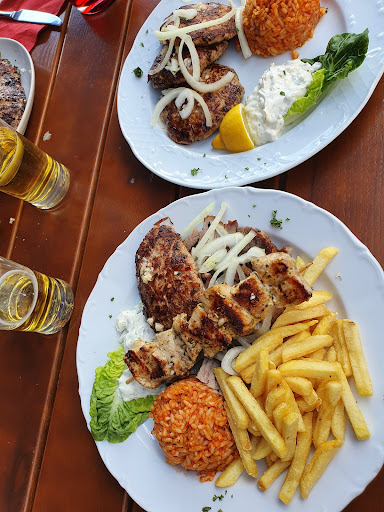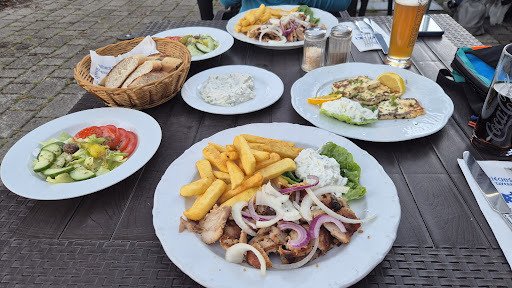 Read moreDa wir unseren Vatertagsausflug in die Region geplannt hatten und diese schöne griechische Taverne auf unseren Weg lag versuchte ich erstmal per Mail einen Tisch zu reservieren. Ging nicht, keine Antwort. Dann über das Programm welches sie verwenden.. keine Antwort. Irgendwann dann einen Tag vor dem Ausflug angerufen und einen Tisch reserviert. Hurra das wäre ja mal geschafft. Nach ca. 25 km radeln sind wir dann an dem Biergarten der Taverne angekommen. Wir wurden sehr herzlich und freundlich begrüßt. Wir konnten gleich bestellen und unsere Vorspeisen genießen. Der Beilagensalat war leider nur mit wenig Öl angemacht, kein Salz und kein Pfeffer, geschweige denn Öl, Balsamico usw. auf den Tisch. Das war leider alles andere als die leckeren griechischen Salate die wir so kennen und lieben. Vorspeisen waren dagegen excellent. Pita-Knoblauchbrot war super lecker und absolut frisch, der Saganaki ( panierte Fetakäse ) war ebenfalls sehr gut. Die Chipskartoffel waren auch sehr knusprig und lecker aber da fehlte wieder Salz und da es am Tisch wirklich nichts gab musste ich um Salz bitten. Das wurde auch prompt und freundlich gebracht. Aber auch wieder nur das Salz, wenn man jetzt Pfeffer mitgebracht hätte wäre es bestimmt nicht schlimm, obwohl in meinen Augen gehört beides auf den Tisch. Zu diesen wirklich gelungenen Vorspeisen wurden auch 2 Teller Tsatziki mit Brot aufs Haus gebracht. Das war wirklich sehr nett. Dann kamen die Hauptmahlzeiten. Wir hatten 2 mal das gefüllte Bifteki, 1 x die Keftedes ( Hackfleisch"bällchen" ) und einen Artemis Teller ( Gyros, Souvlaki, Hacksteck, dazu Reis und Tsaziki ). Wie man sieht alles verschiede Gerichte, die leider alle gleich geschmeckt haben. Egal ob man den leblosen Reis, das Hackfleisch oder was auch immer gegessen hat. Es hat alles nach einen Gewürz geschmeckt. Wenn ich ehrlich bin hat mich dieses Gewürz ( ich hoffe dass es ein Gewürz war ) nach diesem Brennspiritus erinnert mit dem man Grills anzündet. Wir sind wirklich gute Esser aber keiner von uns 4 hat sein Teller leergegessen. Zum Glück gab es dann noch ein Ouzo aufs Haus. Eigentlich schade, aber ich kann nicht mehr als 2 Sterne geben und die Setzten sich aus der Freundlichkeit und Vorspeisen und den sehr sauberen Toiletten zusammen. Auch die Corona Maßnahmen wurden absolut eingehalten. Dennoch denke ich nicht, dass wir dort nochmal zum...