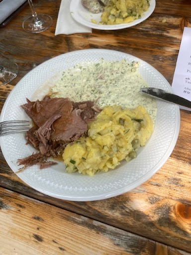 Read moreAm Pfingstmontag hat der Metzger Elzenheimer aus Frankfurt wieder sorgsam geschmorte Ochsenkeule angeboten. Wein und Essen gab es im wunderschön am Rhein gelegenen Weingarten. Die Keule war lecker und preislich ok, solche Angebote sind im Aussterben begriffen. Die Weine des Winzers selbstverständlich im Ausschank. Wetter hat mitgespielt. Man isst an einfachen Biertischen und mit Glück im Schatten eines Baumes. Für nächsten Jahr Plätze dringend im Voraus...