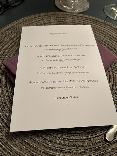 Read moreFreundlicher Empfang. Angenehme, heimelige Atmosphäre im Gastraum. Gruppen ab 6 Personen (ich gehörte dazu) unterliegen dem Menu-"Zwang" (dann also kein à la carte) und kommen aus dieser Nummer halt nicht raus. Das heißt dann auch "alle Gänge werden in Kleinformat serviert", und so war es dann auch. Das Essen war sehr gut, in jeder Hinsicht. Wie das à la carte-Essen ist, kann ich nicht beurteilen (siehe oben). Der Wein war ebenfalls sehr gut und gut ausgewählt, aber preislich halt auch im oberen Bereich (die Empfehlung zu den einzelnen Menu-Gängen zwischen 5 und 8 € pro 0,1 l). Soweit, so gut. Beim Hauptgang "Rinderfilet" hätte man jeweils die gewünschte Garstufe abfragen können, aber zumindest für meinen Geschmack war das Ergebnis sehr gut getroffen. Das erst nach dem ersten Gang gereichte (Weiß-) Brot blieb qualitativ weit hinter der Küchenleistung zurück. Das hätte ich mir zudem früher und mit etwas Streichfähigem (Butter, Schmalz) gewünscht. Zum Thema "Brot" hatte ich meine Kritik per E-Mail den Betreibern mitgeteilt, da kam aber binnen 1 Woche keinerlei Reaktion. Daher bleiben nur 4 Sterne. Nachtrag: 1 Tag nach meinem Posting habe ich eine ausführliche...