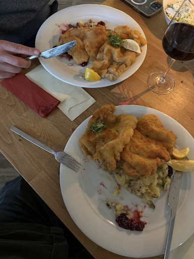 Das Kalbsschnitzel war nicht nur zart sondern sogar in üppiger Anzahl auf dem Teller vorhanden- quasi 2. WOW! Niemand konnte mehr Dessert verspeisen....ausser ich. Denn ich lass die Kartoffeln weg, damit der Süßkram jaaaa noch reinpasst.