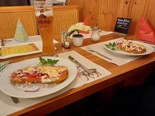 Wir wollten eigentlich nach einer Wanderung im Waldhof in Spechthausen speisen, da war aber an einem Sonntag um 14 Uhr für 2 Personen kein Tisch zu bekommen. Daher waren wir froh, auf der Rückfahrt den Hinweis an der Straße auf dieses ungarische Restaurant zu finden. In mir erwachte die Hoffnung, endlich mal wieder Huhnpaprikasch mit Nockerln zu bekommen. Leider gab es soetwas nicht. Wir kamen rein und fanden uns als die einzigen Gäste wieder. Die Einrichtung schien uns irgendwie passend, eine Mischung aus Lokalkolorit und ungarischen Akzenten. Die Bedienung war freundlich und alles ging schnell. Da entschieden wir uns für Kesselgulasch für 10,80, stand unter Vorspeisen. Es wurde tatsächlich in kleinen hübschen Blechkesseln serviert und war so heiß, dass wir uns beide Zunge und Gaumen verbrannten. Aber o.k., wir hätten ja etwas vorsichtiger sein können. Es war eine Art Letscho und schmeckte sehr gut, nur das Gulasch hatte sich wohl irgendwie versteckt. Nun gut, vor Ostern kann Suchenüben nicht schaden und tatsächlich fand auch jeder noch etwas. Irgendwie waren wir trotzdem zufrieden, da wir froh waren im Warmen zu sitzen und es, wie gesagt, ja wirklich geschmeckt hat. Letscho schien uns die Basis für die meisten Gerichte auf der Speisekarte zu sein, aber, wenn es schmeckt, wen stört's? Ich vermute mal, auch die anderen Speisen schmecken. Also so eine richtige Note kann ich nicht vergeben, da wir ja nur ein Essen hatten. Im Sommer sitzt man sicher auch hinter dem Haus ganz urig, den Bellevue gibt es ohnhin schon lange nicht mehr. Der Name stammt wohl noch aus einer Zeit, als die Bäume deutlich kleiner waren. Der Toilettenvorraum gab sich vom Geruch her sofort als solcher zu erkennen. Sicher gibt es da auch Möglichkeiten, ihn weniger leicht erkennbar zu machen. PS: Als Apfelsaftschorle kam ohne Nachfrage die größere Varinate, 0,4 zu sagenhaften 5 Euro und damit teurer als die gleiche Menge Bier. Das Bernauer Helle hat übrigens...