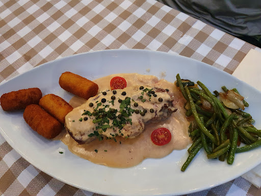 Eher zufällig kehrten wir dort zu viert ein. Von der sehr freundlichen und dem Familienbetrieb zugehörigen Bedienung herzlich empfangen, fühlten wir uns gleich wohl. Seitens des Personals war man auch spontan zum Flaxen aufgelegt, ohne dabei zu überdrehen. Des Weiteren war das Personal immer auf Draht und flink. Wir aßen 2x Rumpsteak, welches auf den Punkt gegart war sowie Bandnudeln mit Steinpilzen und Filetspitzen und zwei Riesengarnelen mit einem Filetsteak. Das Essen war ausnahmslos von guter Qualität und geschmackvoll angerichtet. Geschmacksache ist wohl der "al dente Zustand" des Broccoli zu nennen, welcher einmal so nicht ankam. Das ist jedoch jammern auf hohem Niveau und tut der Bewertung keinen Abbruch. Beim nächsten Mal werden wir nicht zufällig dort gewesen sein. Update am 20.08.22: Wie versprochen kamen wir zu einem zweiten Besuch und wurden erneut freundlich, kompetent und mit Witz bedient. Wir aßen Kalbsleber mit Tomaten und Zwiebeln geschnetzelte Leber, Rumpsteak mit Gorgonzolasauce sowie Rumpsteak mit Pfeffer-/Cognacsauce. Als Vorspeise gab's Schnecken und Tomatensuppe. Wir wurden richtig satt und fanden es rundum lecker.