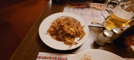 Und dann kam das Essen🫣 Ich habe ein Medium Entrecote bestellt und ein rohes Stück Fleisch bekommen und das auch noch in schlechter Fleischqualität. Es war weder ordentlich angebraten, noch war es ansatzweise Medium - es war einfach roh😂 Dementsprechend probierte ich einmal und stellte es dann bei seite, in der Hoffnung dass irgendwann im Laufe des Besuchs fragen kommt ob alles ok ist, was nicht passierte. Die Bratkartoffeln waren nicht ganz so katastrophal aber weit weg von gut.