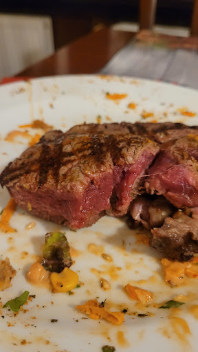 Read moreTisch am Samstag Abend reserviert. Ambiente im Nebenraum auf unterem Niveau. Die Beleuchtung von der Helligkeit angemessen, aber Leuchten schlecht positioniert, die Karten waren aufgrund dessen schlecht zu lesen. Kaum Belüftung - Raum insgesamt zu stickig. Aufgrund der Uhrzeit sicher rege besucht - Lautstärke aufgrund einer Gruppe stark alkoholisierter Männer deutlich zu hoch. Bilder schief an der Wand, teilweise stark innerhalb des Rahmens verrutscht. Billige Gestaltung insgesamt, Rustikalität erkennbar, allerdings im negativen Sinne. Relativ lange Wartezeiten bis Bedienung die Bestellung aufnimmt. Auswahl an Speisen gut und vielfältig. Getränkeauswahl nichtalkoholische etwas unterrepräsentiert. (Kein Tomatensaft, keine Rhabarberschorle) Bedienung bemüht aber freundlich. Speisen waren insgesamt okay, allerdings zu einem guten Preis-Leistungs-Verhältnis. Theoretisch nur 2 Sterne, da das Steak trotz eines ausdrücklichen Wunsches nicht Bleu oder wenigstens rare wäre, sondern deutlich in Richtung Well done tendierte. Einen Stern zusätzlich für die unproblematische Reklamation. Steak dann fast perfekt aber kalt. Problem offensichtlich bekannt. Rare wird nur auf Nachfrage angeboten. Für ein Mexikaner wäre das okay, aber die Ausrichtung auf Steakhouse, lässt andere Möglichkeiten zumindest erwarten. Wäre nicht nochmal meine Wahl, wenn es um ein angenehmes Essen in schöner Atmosphäre geht, da in der näheren Umgebung ausreichend Alternativen vorhanden sind, aber wenn die Ansprüche nicht darauf ausgelegt sind, und man keine blutigen Steaks erwartet, dann ist es sicherlich eine ganz gute Wahl! (Mit vorhandenem...