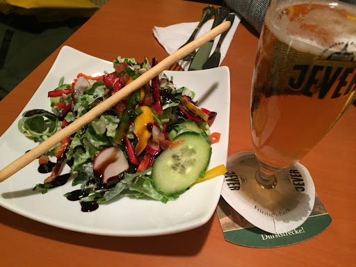 Read moreWir waren mit mehreren Personen essen . Alle außer mein Mann und ich waren schon vorher dort essen. Wir haben uns heute spontan entschlossen dazu zu kommen . Ich habe Fisch gegessen . Und obwohl ich keine Senfsosse mag meinten die anderen , die das schon gegessen haben , ich sollte es doch probieren. Also ich kann nur sagen so eine leckere Senfsoße habe ich noch nie gegessen . Super lecker . Und der Fisch ein Gedicht . Ich habe schon sehr viel Fisch gegessen aber der war absolute Spitze . Sehr zart absolut auf den Punkt gegart . Auch die Salatbeilage war sehr gut . Viele frische Sorten im Salat . Wir hatten eine Veganerin dabei und die Bedienung hat beim Koch nachgefragt . Er hat Blattspinat mit Linsen empfohlen . Dazu Bratkartoffeln ohne Speck . Das sah auch sehr lecker aus . Der dazu bestellte Salat war genauso abwechslungsreich wie unsere Beilagensalate . Allerdings mit veganen Dressing . Auch unser " Nachtisch" war sehr gut . Wir hatten Eis mit Sahne, Küchlein mit Eis und Karamellsoße ( ich wollte wegen keine Sahne ) und Kirschkuchen . Die Bedienung war auch sehr freundlich . Zwischendurch wurde nicht mehr benötigtes Geschirr abgeräumt . Wir werden bestimmt wieder dort...