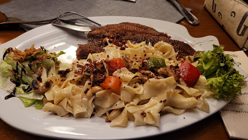 Das Essen war leider hingegen im freundlichsten Sinne Standard. Es war nicht schlecht, aber halt nichts in Restaurantqualität bzw. Restaurant-Anspruch, sondern eher als hätte man sich schnell zu Hause was gemacht. Die Bärlauchpasta war einfach eine simple Sahnesoße mit einem Hauch Bärlauch den man nicht wirklich herausgeschmeckt hat; generell war der Geschmack eher fad. Der "Scharfe Fisch" war zu gut Angebraten, und dann einfach Chiliflocken drauf (laut Karte "verfeinert"). Die Pasta zum Fisch war wahrscheinlich die gleiche Sahnesoßenbasis wie bei der Bärlauchpasta, dann nur Paprika und Cashew reingeworfen (den in der Soße war der Geschmack nicht) und dann wieder Chilipulver drauf.... Das Häufchen Salat auf beiden Tellern hätte man sich sparen können, und warum man Röstzwiebeln (nicht selbstgemacht) als Topping auf dem Salat für eine gute Idee gehalten hat bleibt ein weiteres Rätsel.