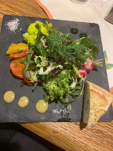 Kurzum: alles war leidenschaftlich angerichtet, rundum stimmig, sehr gut abgeschmeckt und lecker!! Frische Kräuter, leckere Vinaigrette, warmes Essen, tolle Optik. Die Bedienung war aufmerksam und sehr freundlich. Wir mussten etwas warten auf unser Essen, was wir uns aufgrund der Gästeauslastung erklärt haben. Die Annahme war nicht Korrekt wie sich herausstellen sollte. Die Aufklärung haben wir dann vom Küchenchef Matze selbst bekommen. Weil wir so begeistert waren, wollten wir uns nämlich direkt bei ihm bedanken. Es stellte sich heraus: Die Speisekarte hatte am heutigen Tag Premiere! Und bei allem Respekt: die Küchen-Crew hat es echt super Toll umgesetzt!! Gratulation!! Der Stress des Abends war ihm anzusehen, umso mehr hat es uns gefreut, ihm unsere Begeisterung mitteilen zu können!!