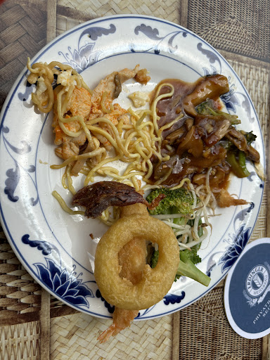Fried sushi 2 stars The chicken coconut curry 3 stars Duck sauté 3stars Fried duck 2.5 stars Fried shrimp tempura 3.5 stars Fried squid rings 1stars(seemed like only flour. The squid was so „soft „ with no flavor. Tasted like pure fried flour rings) Fresh salad bar 4 stars, limited selection ok Dessert bar fresh fruit, great ice cream, decent chocolate...
