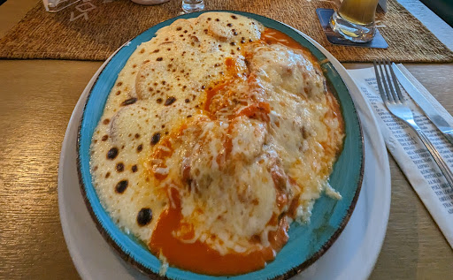 Read moreGriechische Gastlichkeit und griechische Küche - Fehlanzeige Wir hatten reserviert, allerdings hatte man bei der Reservierung nicht erwähnt, dass der Tisch dann nur bis 19:00 Uhr zur Verfügung steht. Und wir waren offensichtlich nicht die einzigen, denen man dies verschwiegen hat. Es geht alles Schlag auf Schlag, sehr gut durchorganisiert, komplett auf Tempo, nicht auf griechische Gastlichkeit. Es ging schon damit los, dass es Bier nur im halben Liter gibt und nicht auch als 0,3 l. Muss man eben nicht so oft laufen. Für Frauen, die vielleicht nicht einen halben Liter zügig leeren, echt ärgerlich. Dann hatten wir klassisch Bifteki und Gyros mit Metaxasoße und kretanischen Kartoffeln. Von Feta, wie ich es bei einem Griechen erwarten würde, ist in der gesamten Speisekarte nicht die Rede, sondern nur von Käse, weißem Käse oder gar Goudakäse. Das Zaziki entspricht entspricht eine. billigen Discounterprodukt, nicht aber einem wirklich handgemachte original griechischem Tsaziki, keine Joghurt-Textur und von Knoblauch habe ich nichts gemerkt. Die Metaxa-Soße war knallrot und schmeckte total nach Ketchup. Die kretanischen Kartoffeln waren Kartoffelscheiben mit einer undefinierbaren Masse überbacken, von der man uns nicht sagen konnte, was das ist. Das ist geheim, ich wollte auch nicht das Rezept, sondern nur wissen, was wir da essen. Zugegeben, die waren ganz lecker aber für eine Beilage viiieeel zu viel. Und der Hammer, unsere Tischnachbarn hatten nicht aufgegessen und mussten sich die Reste selbst am Tisch einpacken. Deren Rechnung gab der Kellner dann mit 84 Euro an. Als sie mitteilten ,getrennt zahlen zu wollen, wollte er von den beiden Parteien jeweils 45 Euro haben. Sorry, ich hätte nicht gezahlt. Unser Fazit: einmal und nie wieder. Eins muss man allerdings positiv erwähnen: Das Setvicepersonal ist sehr nett und zuvorkommend, macht den Rest...