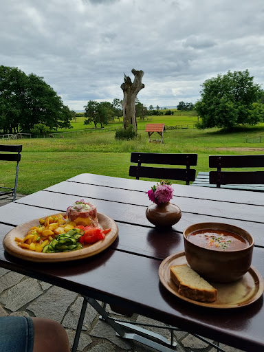Ein guter Abstecher der sich lohnt zu erwandern oder zu erfahren mit dem Rad. Völlig unbedarft und im kurzurlaub sagte ich zu meiner Frau lass uns umdrehen mal schauen was uns erwartet. Der Hof ist der Hammer eingebettet in ein Meer von Wiesen die Weite des Blickes bei einem warmen Stück Pflaumenkuchen mit einem Kaffee meiner Frau an der Seite......ohne Worte. Die nette Bedienung fand ich echt super es war mir eine Freude euch mal in der Kürze der Zeit kennen gelernt zu haben. Der weg ist nicht kurz aber er lohnt sich...fahre nächstes Jahr auf eine Wildbratwurst mal wieder dorthin. Die hab ich mit Absicht sausen lassen weil ich die Leute mal kennen lernen möchte......mein Halbbruder ist seit seiner Geburt schwer behindert ich weiß was es heißt diese lieben Menschen in Lohn und Brot zu bekommen liebe Grüße an den Hof. Grüße aus Werder...