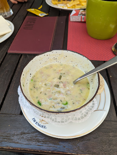 Read moreIm Engel gescheitert - Koch sei ausgefallen, Verweis aufs Engelchen. Getränke bestellt, Essen bestellt. Nach gut 45 Minuten noch keine bestellte Vorsuppe. Dann Info: der Chefkoch sei ausgefallen. Von unserer Bestellung kein Wort mehr. Andere Gäste, die deutlich später kamen als wir, hatten ihr Essen schon. Unsere Bestellung ist offentlichlich verschludert worden. Man hatte es nicht nötig gegebenenfalls Nachfrage zu halten - schliesslich warteten wir offensichtlich. Bleibt zu hoffen, dass das organisatorische Chaos heute eine...