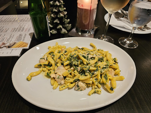 Read moreIch gebe sehr ungern schlechte Rezensionen, jedoch kann ich hier nicht weggucken. Wir waren heute Abend dort essen - Pizza mit Parma und rucola, Kürbisnudeln mit Gambas und Wein gab es auch dazu. Der Rotwein, den mein Mann bestellt hat, hat so geschmeckt als ob der Wein seit Ewigkeit geöffnet dort rumstand - kaum bis gar kein Geschmack. Mein Rosé hingegen fand ich sehr lecker. Nach einer kurzen Wartezeit kam dann auch schon das Essen an. Die Pizza - geschmacklos und verbrannt. Keine Gewürze vorhanden (nicht mal Salz) und hat meinem Mann überhaupt nicht geschmeckt. Er hat sich mit dem Schneiden sehr schwer getan, da die Messer super unscharf waren und die Pizza eben verbrannt (knuspriger als gewünscht). Im Menü beschrieben waren meine Nudeln wie folgt: (cavallino mit kürbis-gambas-Creme). Bekommen habe ich trockene Nudeln mit bisschen geriebenem Kürbis, 2 Gambas und ein Rührei mit drin. Mit Creme hat dies nichts zutun gehabt und den Preis von knapp 17€ ist überhaupt nicht gerechtfertigt. 2 Gambas in einer kleinen Portion mit Nudeln…echt eine Frechheit dafür 17€ zu verlangen. Preis-leistubgsverhältnis passt überhaupt nicht.