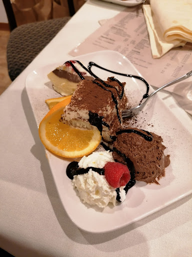 Das Filetto al Pepe Verde war auch sehr gut gelungen. Das Rinderfilet war auf Wunsch medium gebraten und war sehr, sehr zart. Dazu gab es Rosmarinkartoffeln und Mischgemüse, sowie Cognac - Pfeffer - Rahmsoße. Das Mischgemüse war leicht süßlich und passten somit sehr gut zur Soße. Als kleiner "Beifang" gab es Pizzabrötchen. Diese waren ebenfalls frisch und ( meine Vermutung!) waren selbstgemacht.