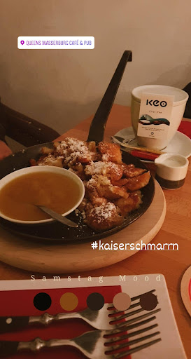 Letzte Woche sind wir, ich und meine Frau ins Queens Cafe und Pub gegangen. Es war abends, keine Lust zum Kochen, Abendbrot oder ähnliches und somit wollten wir was anderes erleben. Ein Irish Pub bei uns auf dem „Lande“, in unserem wunderschönen Wasserburg am Inn ist schon was anderes. Beim Eintreten kommt sofort auf einen das typische „bekannte“ Bild von einem Pub wie man in Serien oder Filmen erleben kann. Angenehme Atmosphäre, absolut reizvoll. Man wird freundlich empfangen. Man kann zum Essen an der Theke Platz nehmen oder in einem separaten Raum normal am Tisch sitzen. In jedem Raum wird man von der Königsfamilie begleitet, was aber nicht zu aufdringlich erscheint. Essensauswahl ist gut, Suppen, Burger, fish&chips, hausgebackene Kuchen, die richtig verführerisch aussehen usw. Wir haben richtig Hunger mitgebracht, crunchy chicken und pulled chicken Burger, Ofenkartoffel mit Sauerrahm und Salat bestellt, dazu ein Paar Gläser Wein und Bier, es war alles super lecker. Danach eine Portion hausgemachter Kaiserschmarrn mit Apfelmus und Tee, beides hat grandios geschmeckt. Die Wartezeiten sind so lachhaft, unglaublich, aber jedesmal hat es max 10 min gedauert. Die Preise sind ok, wir haben für das Ganze ca. 50€ bezahlt. Und, wenn man bedenkt, daß es auch mal Live Musik gibt, gibt es nur das Fazit: immer...