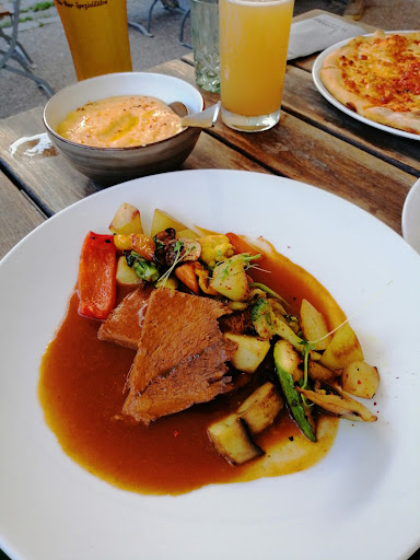 Read moreDas Il Plonner stellt sich auf seiner Webseite als gehobenes deutsch/italienisches Biolokal da. Da ist noch viel Luft nach oben.||- Die Tische im Garten sind weder mit einer Tischdecke noch mit Platzsets versehen, obwohl die Tische ihre beste Zeit bereits hinter sich haben. ||- Die Bedienung war freundlich bemüht. Auf die Frage nach angebotenen Rotweinen musste sie erst nachfragen und konnte dann die zwei angebotenen Sorten nicht komplett benennen.||- Die Vorspeise (Salat mit gebackenem Scamorza) war gut und auch für zwei Personen ausreichend, allerdings mit € 14,00 auch gut bepreist.||- Die größte Enttäuschung waren die beiden Hauptgerichte. Einmal aus der Karte und einmal von der Tagestafel. Diese beiden Speisen hatten nichts, aber auch garnichts mit den Angaben auf der Karte zu tun. ||Der Toskanische Braten war ohne Kräuter und mit einer dunklen Jägersoße zugekleistert; die angeblichen Rosmarinkartoffeln hatten ein solches Gewürz nie gesehen. Wenn die Kartoffeln nicht gewesen wären, hätte das Ganze auch als deutscher Schweinebraten durchgehen können. ||Bei der angebotenen Porchetta (im Original mit Kräutern gefüllter Rollbraten) handelte es sich um 3 Scheiben fetten Schweinebauch ohne jegliche Gewürze. Würze erhielten die Beilagekartoffeln nur durch die in Öl eingelegten Tomaten. Für € 14,00 ein teurer Reinfall.||Es ist dem Koch dringend zu empfehlen entsprechende youtube-Videos von der jeweiligen Speisezubereitung anzusehen, wenn er die einzelnen Gerichte schon nicht kennt. Den fehlenden Rosmarin bei den Kartoffeln haben auch schon andere Gäste in den Bewertungen angeben.||Unsere Reklamation bezügl. oben genannter Kritik wurde mit den Worten „ ich gebe es an die Küche weiter“ beschieden. Eine weitere Reaktion erfolgte nicht.||- Die Pizza Parma e Rucola (auf der Tageskarte mit €14,50, auf der Tafel mit € 15,00 angegeben) ist - selbst für Bio – ein stolzer Preis.||||- Noch eine Bemerkung zu Covid19: Es befand sich eine größere Gruppe (ca. 15 Personen) im Salettl, dicht neben einander sitzend. Masken wurden sowohl weder beim Kommen und Gehen, noch bei Gang in die Innenräume aufgesetzt. Bei den meisten waren wohl auch überhaupt keine vorhanden. Auch bei den meisten anderen Gästen, die den Garten aufsuchten, wurde kein Mund-Nase-Schutz benutzt. Ein Hinweis des Personals erfolgte nicht.||Alles in allem lässt sich sagen: ein „Il“ bedeutet noch lange keine italienischen Speisen. Uns wird man als Gäste dort nicht mehr antreffen, obwohl wir in nicht allzu weiter...