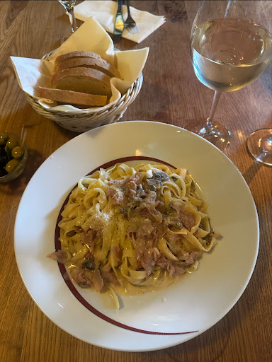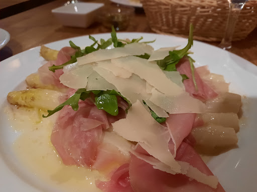 Read moreWir waren mit mehreren Personen an einem Samstag dort und bereits beim öffnen der Tür schlägt einem das bunte Treiben entgegen. Die Küche befindet sich quasi mit im Raum, sie ist auf einer Art Erhöhung. Die Stimmung dort war ausgelassen und heiter, es wirkte fast wie in einer italienischen Gasse unter Italienern. Die etwas sensibleren Leute könnten das zu laut finden - ich selbst habe nix vom Gegenüber verstanden, lediglich Fetzen kamen bei meinen Ohren an und nur mit meiner direkten Nachbarin konnte ich mich angemessen unterhalten. Mein Essen war grandios, ich hatte Fisch, dazu Spaghetti und zum Nachtisch Marcarpone mit Früchten. Der Fisch war oberlecker, ebenso die Nudeln. Beim Mascarpone war ich etwas enttäuscht, denn bei dieser Art von Italiener hatte ich mir mehr Geschmack erhofft, so aber fehlte der Pfiff an dieser Nachspeise. Ich hatte Fleisch von meiner Freundin probiert und ich fand es lecker und gut gewürzt, aber doch ein wenig zäh. Und obwohl sie die gleichen Nudeln als Beilage hatte, schmeckten ihre anders, etwas zu scharf und zu salzig. Insgesamt hätte ich mir die Beilage etwas bunter, vielleicht mit etwas gemischten Gemüse der Saison gewünscht, da der Fisch solo kam, also ohne was dazu. Eine andere von uns hatte Pizza Gorgonzola, die ich ebenfalls probierte und so salzig fand, dass selbst ich Nimmersatt sie nicht aufessen wollte. Und das will was heißen. Der Service war extrem gut, ein Naturtalent, das Mädel, sah alles, dachte an alles und war für jeden Spaß zu...