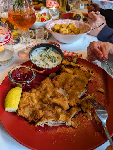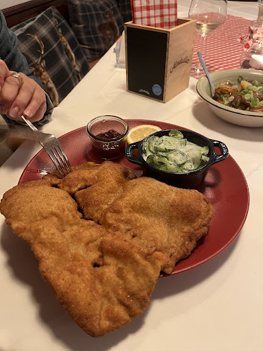 Read moreAbsolut gemütliches und herzliches, kleines Restaurant. Wir wurden wie Freunde empfangen. Wir hatten den Zwiebelrostbraten, innen rosa und das Wiener Schnitzel. Beides war großartig und das Beste, was wir je gegessen haben. Die Bratkartoffeln mit Speck und Zwiebeln sowie der dazu gereichte Gurkensalat, fantastisch. Das Essen auf den Punkt, Österreich High Level! Die Nachfrage nach dem Kaiserschmarren als Nachtisch mussten wir leider verneinen, bekamen aber aufs Haus eine Miniportion zum Probieren. Was soll ich schreiben? Grandios! Was hier aus der Mini Küche kommt, sucht Seinesgleichen. Wechselnde Tagesangebote wie heute Lachssteak aus einem ganzen Lachs geschnitten oder Blutwurst vom Hausmetzger, runden das gelungene Konzept ab. Fazit: Ein absoluter Geheimtipp für alle, die authentische österreichische/deutsche Küche auf höchstem Niveau genießen möchten. Die Kombination aus herzlichem Service, gemütlicher Atmosphäre und exzellenten Speisen macht dieses Restaurant zu einem besonderen Erlebnis, das man sich nicht entgehen...