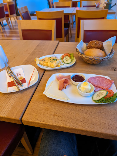Read moreDer Verkaufsbereich ist sehr ansprechend. Das Personal war bei meinem Besuch sehr nett und Serviceorientiert. Meine Frühstücksbrötchen wurden tatsächlich erwärmt. Das habe ich weder im Hotel noch in einer anderen gleichartigen Bäckerei erlebt. Super an einem regnerischen herbsttag ein warmes frisches Brötchen zu bekommen. Die angerichteten Speisen und die Präsentation auf dem Teller, ist sehr gut. Tischbedienung ist auch nicht immer üblich. Das Ambiente ist zweckmäßig und die Tische ausreichend groß. Könnte gemütlicher sein. Aber man ist ja nicht zum Kuscheln da. Die Brote, Brötchen, Plätzchen, etc. Sehen handwerklich alle sehr gut und sehr ansprechend aus. Das macht wirklich Appetit auf mehr. Wer einen gutes Frühstück so ist hier auf jeden Fall richtig und wir kommen preislich finde ich es angemessen. Bei Belag und Garnitur wird nicht gegeizt. Wenn ich in der Nähe bin, werde ich auf jeden Fall wieder anhalten. Der Stopp lohnt sich auf jeden Fall. Ich fühlte mich...