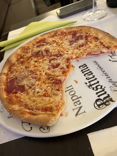 Mein Freund und ich waren gestern bei dem oben beschriebenen Restaurant essen. Wir hatten Glück gehabt, das wir den letzten noch vorhandenen Parkplatz auf dem Gelände bekommen haben. Von Außen konnte man schon erkennen, dass das Restaurant gut besucht war, dennoch konnten sie uns einen Tisch für 2 Personen anbieten. Wir haben zu Anfang gleich ein Schriftstück erhalten, in dem wir unsere Daten (Name, Telefonnummer und Auskunft, ob man genesen, geimpft oder getestet ist) eintragen sollten. Wir hatten uns Bruchetta bestellt und anschließend Gericht 66 und 69, also zwei Pizzen, deren Namen wir leider vergessen haben. Das Bruchetta wurde nach ca. 25 Minuten geliefert. Wir hatten uns schon gewundert wieso es so lange gedauert hat, allerdings war das Bruchetta fast wie eine eigene Pizza angerichtet. Es war sehr frisch von den Zutaten und war sehr gut gewürzt. Die Kombination aus dem Teig mit der entsprechenden Würzung, den Tomaten und dem Ruccula war fabelhaft. Unsere Pizzen wurden auch ca. 25 Minuten nach der Vorspeise angerichtet. Die Pizzen waren lecker, nicht zu fettig und der Teig kam einen nicht so "schwer" sondern leicht vor. Einziger Kritikpunkt war, dass die Pizzen etwas spärlich belegt waren. Dennoch schmeckten sie gut. Wir entschieden uns noch für einen Nachtisch in Form eines Tiramisu. Ich empfand es als sehr sehr sehr köstlich. Das Stück Tiramisu war selbst für 2 Personen ausreichend groß, sodass wir beide satt wurden. Das Tiramisu war wirklich ausgezeichnet, schön luftig, schön kühl und war nicht so extrem alkohollastig vom Geschmack. Für mich persönlich der krönende Abschluss.