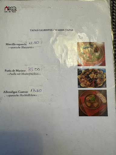 Wir waren heute, am 17.9.2025 im Arco essen. Haben es zumindest versucht. Ich muss vorausschicken, wir waren schlichtweg entsetzt. Auch wenn die meisten Kritiken hier überschwänglich gut ausfallen, muss ich leider von dem Gegenteil berichten. Vor mir hat schon „S.B.“ eine Kritik geschrieben, die ich leider nur toppen kann. Die Einrichtung dieses Lokals ist völlig okay und entspricht wirklich der eines Tapas Restaurant. Dann bekamen wir die Speisekarten zwei Blätter in Plastikhüllen mit überklebten Preisen, die beim ersten Überblick schon aufhorchen ließen. Sehr sehr teuer, wie ich finde, unverschämt teuer. Nur als Beispiel die Tortilla. In der Speisekarte im Internet für 5,50 € angeboten, kostet sie jetzt 13,50 €, aber nicht wie abgebildet als komplett runde Tortilla sondern wir bekamen nur ein knappes Viertel davon mit etwas unfrischem Salat und etwas Brot. Auch die Papas Arrugadas, in der Internet Speisekarte 5,80 €, neuer überklebtter Preis 9,80 €. Für ein paar gekochte Kartoffeln, über die etwas grobes Salz gestreut wurde. Die übliche Salzkruste war leider nicht vorhanden. Beim bestellen rechtfertigte man die Preise mit großen Portionen, und nicht wie üblich in Tapas Restaurant eher klein gehalten. Wir waren im übrigen die einzigen zwei Gäste. Als ich beim bezahlen die kleine Portion und die üppigen Preise ansprach, wurden wir unehrenhaft des Lokals verwiesen und durfte nichts bezahlen. Tja! Zwei Fotos (unvollständig) der Speisekarten,...