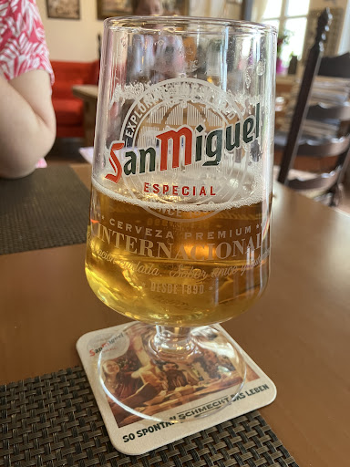 Read moreWollten eigentlich am nächsten Tag dort essen gehen, als wir die Preise für die Tapas gesehen haben, dachten wir erst, ok, Spanier sind immer etwas teurer, egal, trinken wir ne Sangria und freuen uns auf morgen. Dann wurde die Sangria gebracht, in einem Havanna Kola Glas, mit ner Apfelscheibe garniert. Das Glas war zu ⅓ vollgestopft mit kleinen Apfelstückchen, ganze zwei, ca. 1,5 cm große Orangenstücken, das zweite Drittel war Eis. Man sitzt an einer Kreuzung auf Holzbänken mit fast verwelkten Blumentöpfe. Kein Sichtschutz, total ungastlich. Die Speisekarte bestand aus 3 eingeschweißt DIN A4 Seiten, wo die alten Preise einfach überlebt wurden. Zwei habe ich mal abgemacht, die Erhöhung war ca. 2-3 Euro. Die Karte hätte man schonmal neu schreiben können, statt sie den Gästen so vorzulegen, das dauert 30 Minuten am PC. An Zeitmangel kann es nicht gelegen haben, es waren mit uns ganze 6 Gäste da. 4 draußen und 2 drinnen.