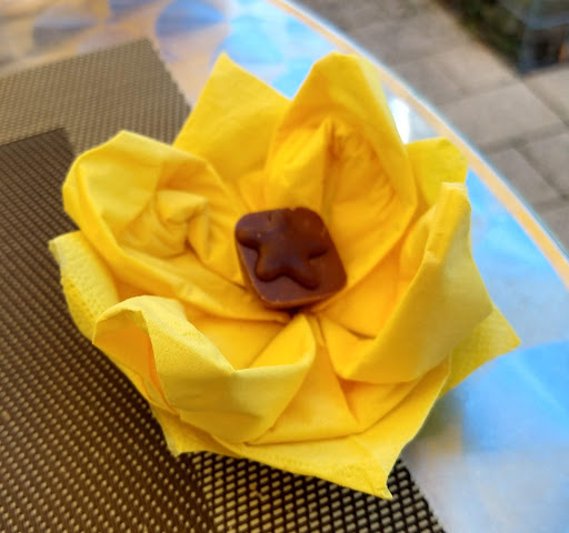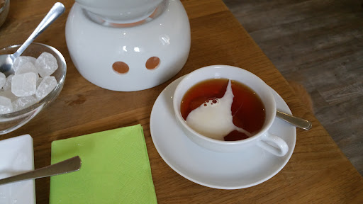Leute, Hammer!!! Wir haben heute ein phantastisches Frühstück mit Riesen-Croissants und einem "Turm" an Auflagen bei den freundlichsten und zuvorkommendsten Wirtsleuten genossen - im Café Rheiderland in Weener. An jeder Stelle des Restaurants merkt man deren Freude an ihrem Beruf. Viele phantasie- und geschmackvolle Asseccoires schmücken das Restaurant. Sofort entwickelt sich eine humorvolle, offene Begegnung mit uns als Gästen. Und das gastronomische Angebot - schaut Euch die Bilder an. Das ist ein Frühstück! Klar, wie überall gibt eine Serviette dazu, sorgfältig gefaltet, aber befindet sich auch überall darin ein Stück Nougat-Schokolade? Und wenn man ein gekochtes Ei bestellt, kommt das - siehe Foto. Inclusive O-Saft, Kaffee, Ei und allem für zwei Personen unter 20 €. Mehr...