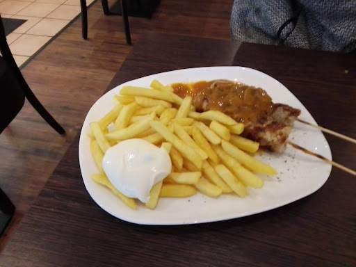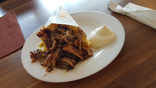 Read moreFing gut an, hat dann aber finde ich sehr nachgelassen... Ein Grund warum ich dort nur noch sehr selten hingehe. Manche mögen ja krosses Gyros, aber wenn es sich dann nur noch um dunkelbraune zähe Stücke handelt ist, kann man nicht mehr von einem guten Gyros reden. Selbst wenn man vorher noch extra sagt, das man bitte kein dunkles Gyros möchte, hat man dann doch 50% der Portion in dunkelbraun... Hier muss man einfach Glück haben, das vorher schon ein Kunde dort war, der die dunkle äußere Schicht bekommen hat, dann schmeckt auch das Gyros wirklich gut. Pommes und Tzatziki sind absolut okay. Wenn das Gyros nicht so schwankend wäre, wäre meine Bewertung auch...