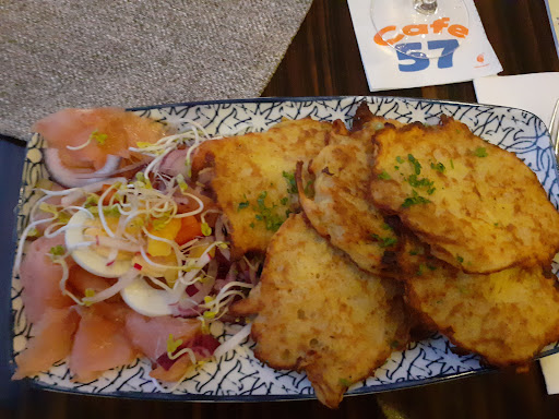Read moreWir haben gestern im Cafe 57 unsere Hochzeit gefeiert. Wenn man 6 Sterne vergeben kõnnte würde ich die auch vergeben. Wir waren im Herbst 2021 dort und haben angefragt ob das Cafe 57 unsere Hochzeit kulinarisch ausrichten wùrde.Gerne hat man unsere Anfrage angenommen, erste Daten wie Personenzahl aufgenommen und grob umrissen welche Mõglichkeiten für ein Hochzeitsbuffet bestanden und auch ein Preisrahmen konnte genannt werden. Selbst als wir das Datum um einen Tag verschieben mussten war das zum Glück kein Problem. Fast ein Jahr spæter haben wir dann mit Hr. Cohnen das verbindliche Essen besprochen. Frau Cohnen wusste sofort noch wer wir waren. Hr.Cohnen hat uns super beraten und ist immer auf unsere Wùnsche eingegangen. Wir fragten bzgl. einer Hochzeitstorte ob er da Kontakte hætte. Ganz offen sagte er, dass er einen Bâcker habe der eine Torte machen könnte es jedoch bevorzugen wùrde wenn wir uns darum selber kümmern würden. Eine Hochzeitstorte sei etwas individuelles und deshalb wùrde er sowas selten machen. Ehrliche Worte die ihn nur sympathischer machten. Unsere Hochzeit lief dann sehr routiniert und reibungslos ab. Das Buffet war absolut Spitze. Das Personal beantwortete selbst in Stresssituationen noch mit einem Lächeln Fragen und war insgesamt sehr sehr aufmerksam. Und Fußball könnten wir auch noch schauen. Mit Sicherheit ist das Cafe 57 etwas teurer. Betrachtet man aber das Gesamtpaket so ist jeder Cent berechtigt Gerne kommen wir wieder um einen netten Abend bei euch...