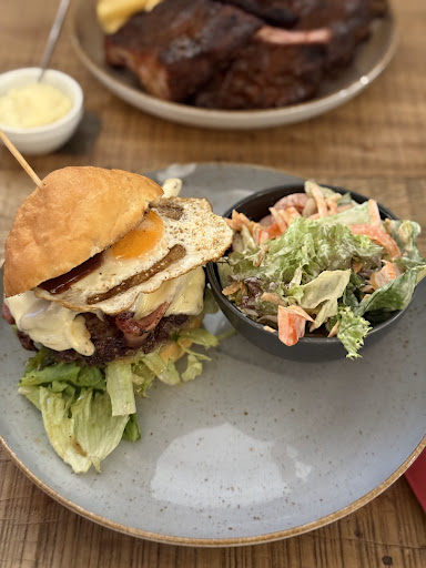 Tja, das war dann ein gemischtes Erlebnis: Die Burger waren sehr gut. Pattie und Bun hausgemacht und genau richtig, die anderen Zutaten frisch und lecker. Die Suppe war ebenfalls sehr schmackhaft. Die Smoker Combo war aber eine ziemliche Enttäuschung, denn erstens konnte diese Dreifaltigkeit geschmacklich und von der Zartheit des Fleisches keinesfalls mit einem original USA Smoker Barbecue mithalten und zweitens waren die Ribs nur leicht angewärmt, kamen also auf keinen Fall frisch aus dem Smoker und hoffentlich nicht aus der Mikrowelle.