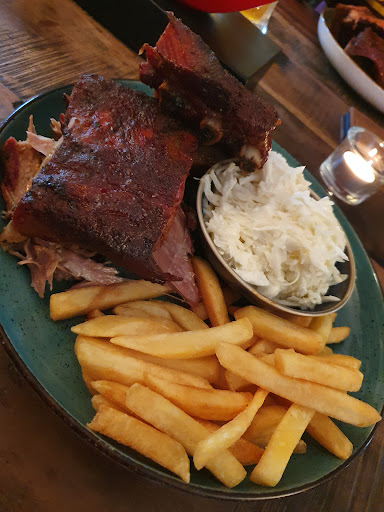 Read moreWir waren am 24.2.23 zum ersten Mal hier essen und hatten nicht vorher reserviert, was man unbedingt tun sollte wenn man nicht wie wir, bereits um 17 Uhr speisen möchte. So aber hatten wir Glück. Die Begrüßung ist familiär freundlich - man duzt sich unkompliziert - und wir mögen das. Das Ambiente ist einfach aber sauber und gepflegt. Die Auswahl an Getränken und vor allem an Speisen ist großzügig. Die Preise sind durchaus selbstbewußt, entsprechen aber auf jeden Fall der Qualität, die man dafür bekommt. Meine Frau hatte einen Burger, der sie begeistert hat und ich entschied mich für die „Combo“ aus Spareribs, Brisket und pullend Pork um eine möglichst große Auswahl probieren zu können. Das Fleisch wird über lange Zeit im Smoker gegart und ist darum auch sehr geschmackvoll und zart und die Menge hätte wirklich nicht größer sein dürfen. Da habe ich lieber die Hälfte meiner Pommes liegen lassen. Als Beilage hatte ich noch sehr leckere „Baked Beans“ gewählt, die ebenfalls sehr zu empfehlen sind. Gibt es was zu kritisieren? Nein, aber vielleicht eine Anregung. Wir haben 12 Jahre in den USA gelebt ( Texas u. Virginia) und haben uns im Land des BBQs durch etliche BBQ-Soßen Anbieter probiert. Dabei sind die Soßen von „ Sweet Baby Ray‘s - the Sauce is the Boss“ für uns immer als Favorit hervorgegangen. Sie bieten ein großes Spektum an Geschmacksrichtungen an wie z.B. Classic BBQ, Hickory smoked, Chipotel, Honey BBQ. Lange haben wir die Soßen von SBRay‘s in Deutschland nicht gefunden umso größer war die Freude, als sie zur Grillsaison in einer kleinen Auswahl bei ALDI zu bekommen waren. In den Niederlanden findet man sie auch in größerer Auswahl und ständig im Sortiment. Die Hauseigene BBQ Soße hat mir aber zweifelsohne auch sehr gut geschmeckt. Wir kommen gerne wieder und können das „ Father und Son „ nur...