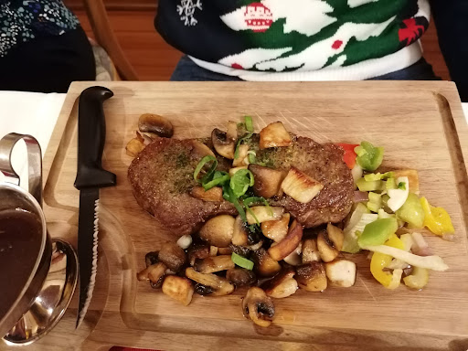 Ich hatte beide male Rumpsteak (1xHundsrück und 1xSchweinefilet und Rumpsteak), die wirklich so gebraten waren wie angegeben, nämlich medium-rare. Es hat alles ganz wunderbar geschmeckt, die gebratenen Pilze dazu, das Gemüse und vor allem die Jus, ich hatte beide male, allein vom Essen Gänsehaut, und das ist nicht gelogen, sowas leckeres.