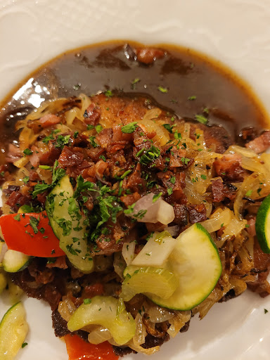 Also ich muss jetzt mal ein Riesen-Lob loswerden, und das gibt es bzgl. Speisen in Restaurants eher selten von mir, wir waren jetzt 2 x essen im Restaurant/Gasthof und waren beide male total begeistert. Meine Frau hatte beim ersten mal Hühnchen, welches sehr zart, saftig und richtig lecker war, beim zweiten mal hatte sie das Schweinefilet Strindberg, ganz hervorragend gebraten mit sehr leckeren Beilagen.