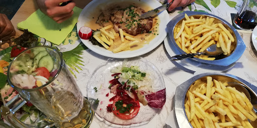 Read moreWir waren am ersten Advent zum Essen dort. Obwohl viel los war, bekamen alle relativ schnell und zeitgleich das Essen. Leider waren die Pommes jedoch extrem versalzen, auch der Rest (zB Nuggets für die Kids) war sehr salzig. Ich hatte die Hausgemachten Hacksteaks und wurde leider sehr enttäuscht. Der Kartoffelsalat kam sicher aus nem großen Eimer und die Zwiebelsoße bestand meiner Meinung nach nur aus Maggi-fix Soßenbinder mit Röstzwiebeln. Die Hacksteaks oder besser gesagt großen Buletten waren auch salzig, aber noch OK. Wenigstens waren sie relativ fluffig. Bei einem Gericht, das man mit "Hausgemacht" krönt, auf Röstzwiebeln und Soßenpulver zurück zu greifen, erschließt sich mir nicht. Da koche ich selbst besser Zuhause... :-( Das Personal war nett, aber kinderunfreundlich. Sie wurden nur als störend wahrgenommen. Kein nettes Wort an die Kids. Dabei sind sie doch auch Gäste - oder etwa nicht? Andere Restaurants bieten Spielecken oder zumindest Malsachen, Brettspiele oder ähnliches an. Wäre vielleicht ein positives Eingehen auf die offenbar nervigen Anhängsel der...