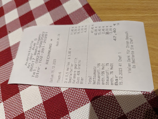 Die Preis-Leistung ist für diesen hervorragenden Service unschlagbar. Von mir gibt es deswegen volle 5 Sterne. Besser geht's nicht. Da können sich andere Gastwirtschaften eine Scheibe...