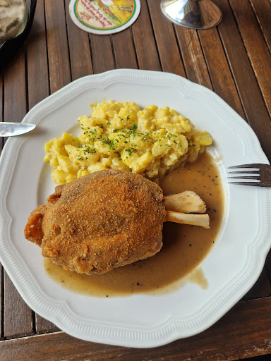 Read moreHauptgericht: Pfefferhaxe mit Kloß, Beilage: Gemischter Salat. Preis/Leistung Für 10,50 Euro eine gut gemachte panierte Haxe mit einer richtig tollen pfeffrigen Rahmsoße. Kloß war ein Kartoffelkloß, der schön geschmeidig war - nah am Thüringer Rutscher. Die Beilage war ein gemischter Salat (nicht wie angegeben ein Rohkostsalat). Denn vorgekochte (bzw. eingeweckte) Karotten zählen für mich nicht zu Rohkost! Außerdem hätte dem Salat auch ein bisschen mehr Dressing gut getan. Fazit: Ordentliches Essen in einer ordentlichen, gutbürgerlichen Gastwirtschaft...