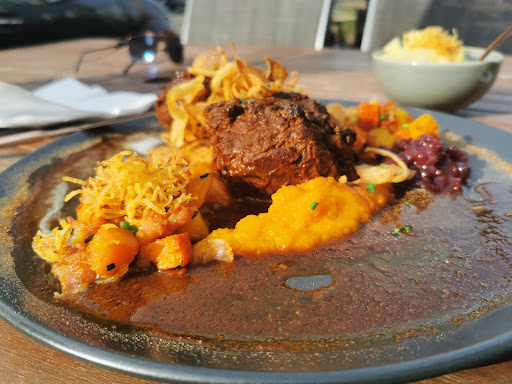 Well, where can I start, the Geschmorte Rinder Rippe was tender and flavorful, as expected, however, it was accompanied by such a variety of flavors, from sweet to savory to tangy to slightly spicy, beautifully presented, it was certainly a delightful dish. I also had the shrimp starter, well prepared, with salad and a delicious Alioli, some of the best food I've had in Germany. I certainly hope to have the opportunity to visit again. I took several photos of the meal, I will be glad to post them after some...