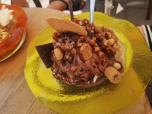 Wir haben uns ein Raffaello Eis bestellt welches in der Speisekarte ziemlich lecker ausgeschaut hat. Nach 10 Minuten wurde uns komplett was anderes gebracht. Was bis jetzt 2 mal da, wollten der Eisdiele nochmal eine Chance geben wegen der schlechten Bewertungen, aber diesmal war das eine Nummer zu viel. Schade, aus dem Grund nur 1 Stern. Achja für 2 Kugeln Eis mit ein bisschen Sahne und 2 Mozartkugeln ( spezielles Eis welches nicht mal in Speisekarte auffindbar war ) 10,50 Euro zu verlangen. Ne danke war definitv das...