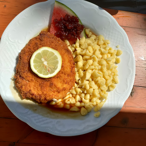 Heute Mittag dort Schnitzel gefüllt mit Romadur und Rauchfleisch mit Pommes sowie Spätzle und Soße gegessen. Für je 16 Euro inkl. Beilagensalat.