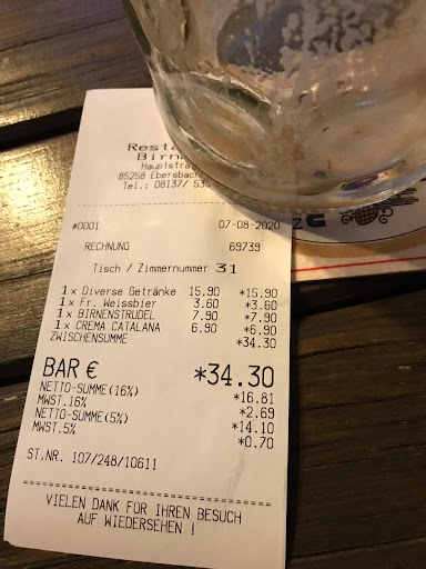 Read moreWe got bad directions and ended up in the middle of farmland in Bavaria. We got hungry and there was NO PLACE to eat! One nice lady referred us to the next village to Birnbaum. We got here and it was closed. We must have looked very sad...the owner came out and when we asked where we might get food he thought, and realized that there was nowhere close that would be open. He offered to make us some food! We got Wurst salat and the kids got homemade hamburgers! The outside eating area is well done and the menu looks amazing. Stop by and give this guy some business. It's...