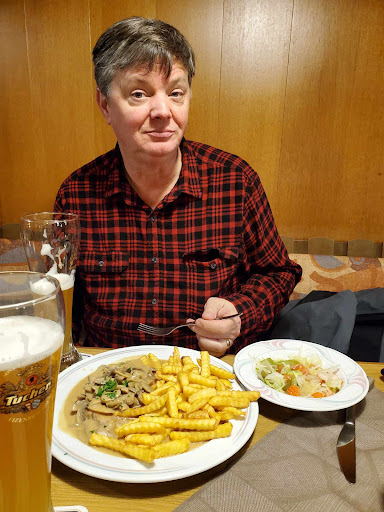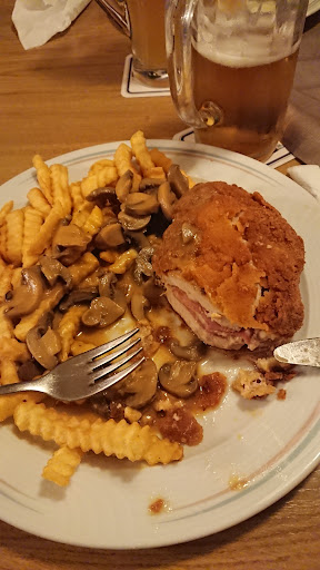 Noch zu erwähnen wäre das die Preise echt günstig sind. In Weiden zahlt man gerne das doppelte für das was wir 2 hatten. Es gab Roulade mit Kloß und Salatteller , Wildschweinbraten mit Kloß sowie 1 Weizenbier und eine Cola zum Preis von unter 25€